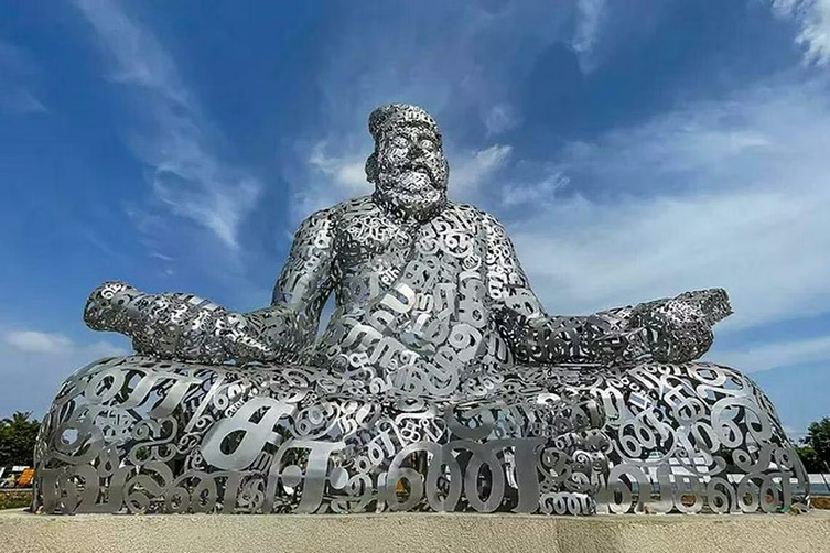 இரும்பால் உருவாக்கப்பட்டுள்ள அந்தச் சிலையின் எடை 2.5 டன் ஆகும். திருவள்ளுவரின் கையில் பனை ஓலையும் எழுத்தாணியும் உள்ளன. நெற்றியில் அறம் என்ற எழுத்து பொறிக்கப்பட்டு உள்ளது.